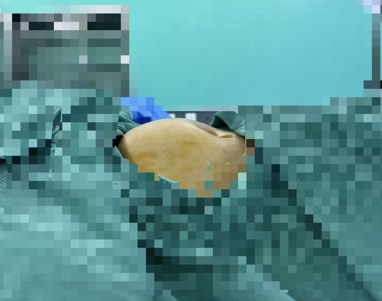 患者经输血治疗纠正贫血后,于1月4日按计划行腹腔镜下全子宫+双侧附件切除术。术中可见患者下腹明显隆起,符合孕5月体征,腹腔镜探查显示子宫体积巨大,且与周围脏器存在严重粘连,手术操作难度较高。妇科手术团队密切配合,精准分离粘连组织。针对巨大子宫标本取出这一关键环节,为最大限度降低对患者的创伤,黄惠君副主任医师采用“削苹果式子宫旋切法”,逐步将孕5月大小的子宫完整旋切取出。
